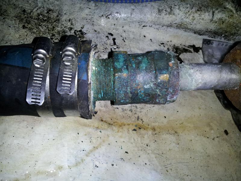 19 I was hoping to repack the stuffing box do this pullout, as it was starting to leak when stopped. Sadly, I was NOT able to get the nut off. It was SO tight and there is SO little room in there it just wouldn't come. Next pullout, drastic actions. Drop the rudder, unbolt the shaft from the transmission (I hope!) remove the shaft and drop in a whole new stuffing box.