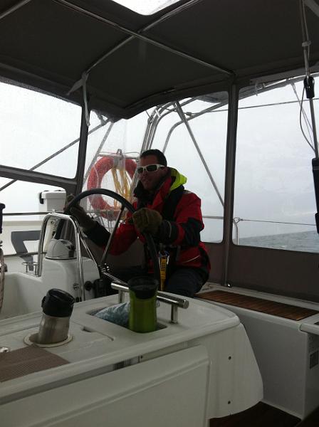 Turnagain in cruising trim, with the full doger installed. Pretty comfortable way to travel in the rain.